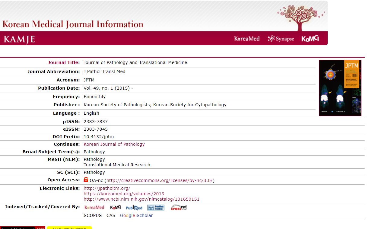 대한 병리학회도 그 속은 비슷할 것이다. 뭔가 국제적 학술지를 내고 싶어 야심찬 시작을 했을 것이다. SCIE(Science Citation Index Expanded)에 등록도 하고 뭔가 국제적 저널로 자리매김하기 위해 애를 쓴 흔적이 보인다.