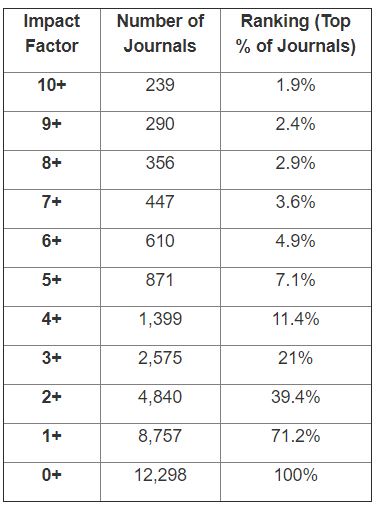 요즘은 뭘 공부하려면 인테넷에 정보가 널려 있다. 아래에 SCI 에 등록된 저널의 IF 분포로 랭킹을 테이블로 표시한 것이 있다.
